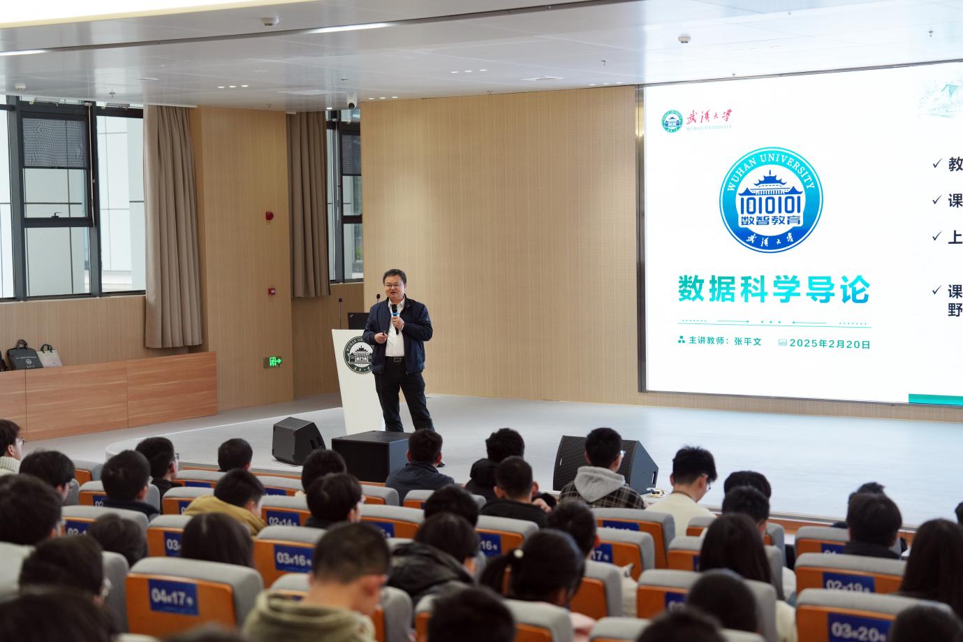 新闻网讯(通讯员胡雪红)2月20日上午,校长张平文院士在雷军楼报告厅为数学与统计学院2023级数学类的230名本科生开讲《数据科学导论》第一讲。该课程作为武汉大学“四位一体”通识课程核心体系的重要组成