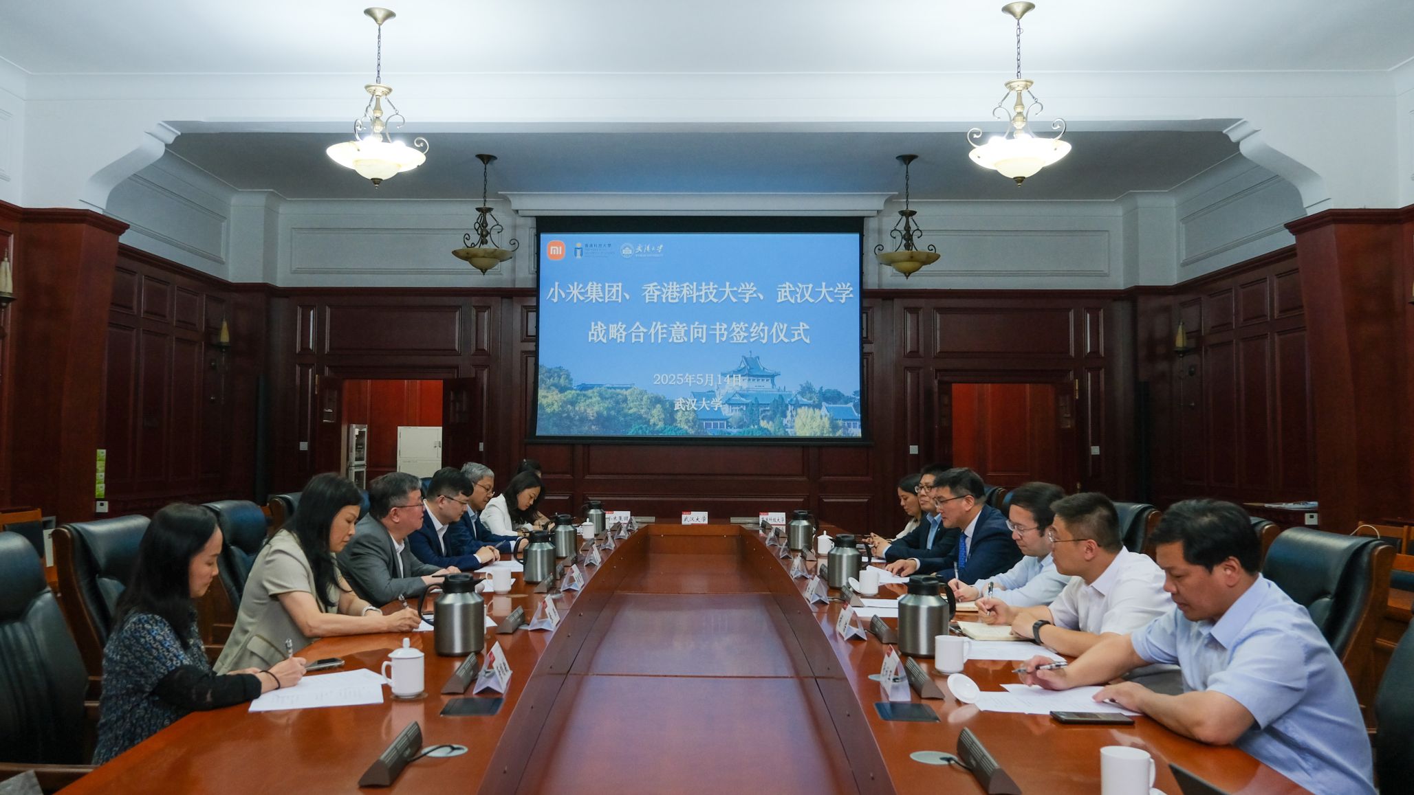 新闻网讯(通讯员杨凡)5月14日,武汉大学、小米集团及香港科技大学举行合作座谈会,签署三方战略合作意向书。小米集团副总裁屈恒、香港科技大学首席副校长郭毅可、武汉大学副校长袁玉峰出席会议,分别代