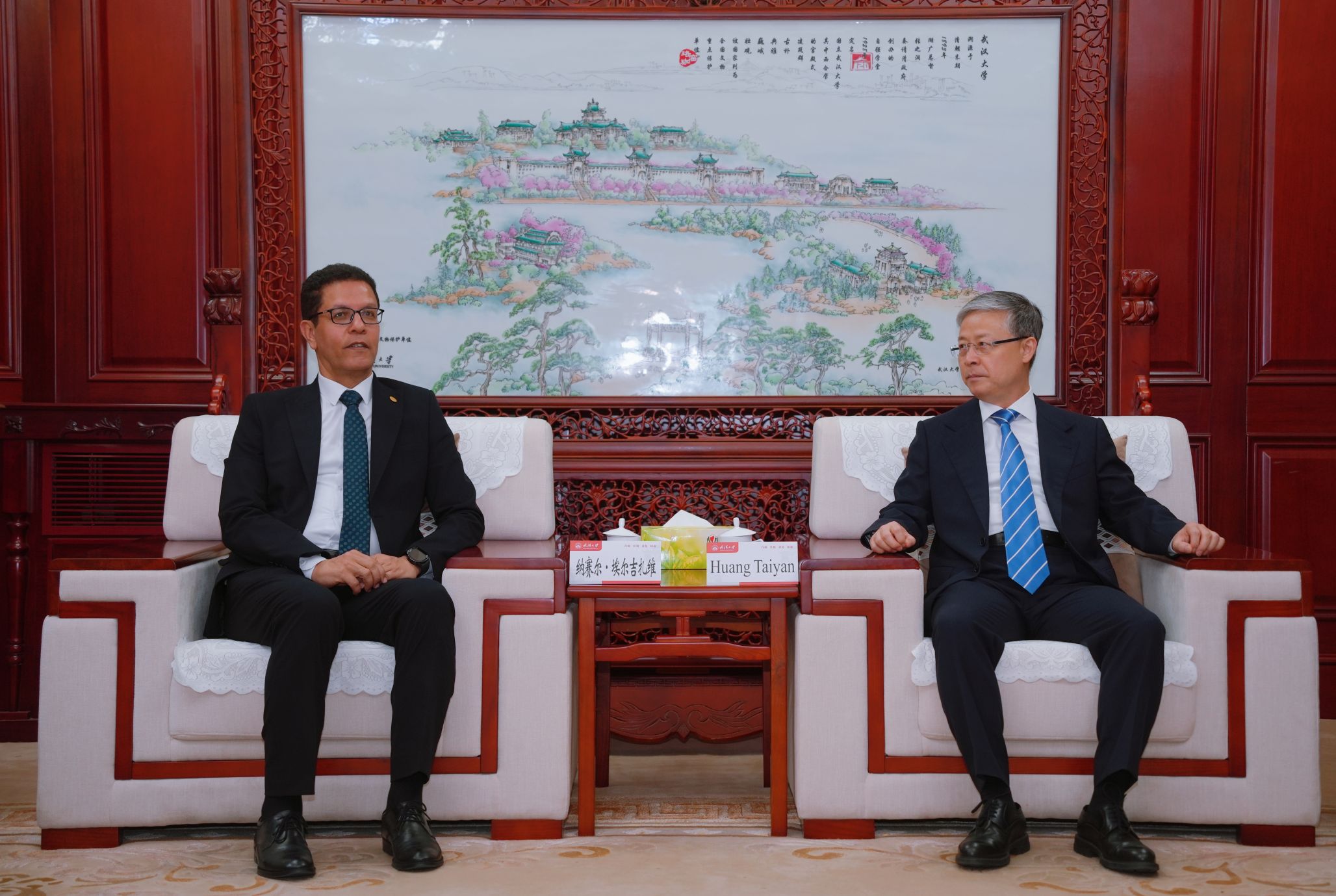 新闻网讯(通讯员付悦)5月17日,埃及本哈大学校长纳赛尔·埃尔吉扎维(NasserEL-Gizawy)一行来访,校党委书记黄泰岩会见来宾,副校长袁玉峰参加会见。黄泰岩肯定了两校长期以来的合作基础与取得的丰硕成