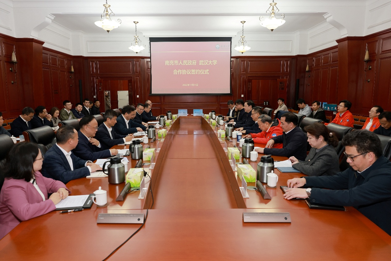 新闻网讯(记者相茹)11月11日,武汉大学与南充市人民政府签署合作协议,共同推进校地协同创新与高质量发展。南充市委书记张冬云、市委常委王毅、副市长罗明远,武汉大学党委书记朱孔军、副校长龚威、校长