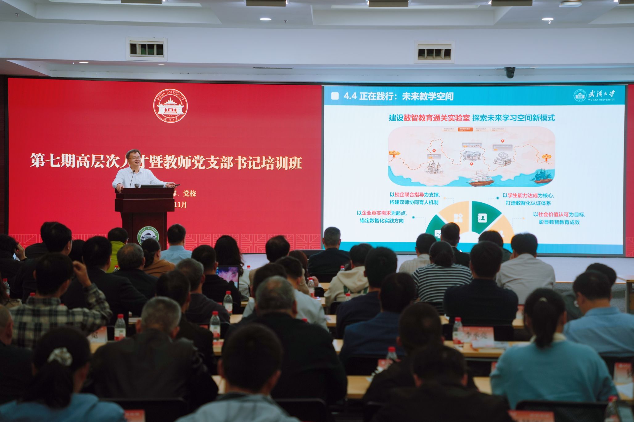 新闻网讯(通讯员王慧)11月10日,武汉大学首期未来教师研修班开班式举行,校长张平文出席并作第一讲报告,常务副校长宋保亮主持开班式。张平文作题为“未来教师与未来社会”的报告,围绕数智时代教育变革