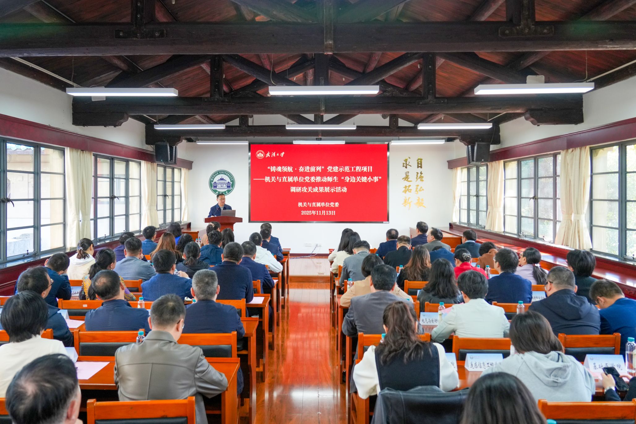 本网讯(通讯员余乐佳)11月13日,武汉大学“铸魂领航·奋进前列”党建示范工程——机关与直属单位党委推动师生“身边关键小事”调研攻关成果展示活动举行。校党委书记朱孔军,党委副书记屈文谦,校长助理